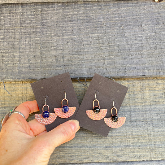 Copper half disk earrings with stones
