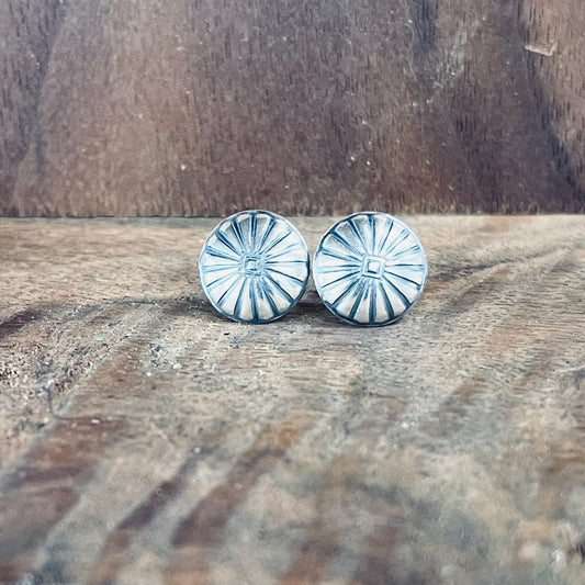 Circular Stud with Concho Pattern in Sterling Silver
