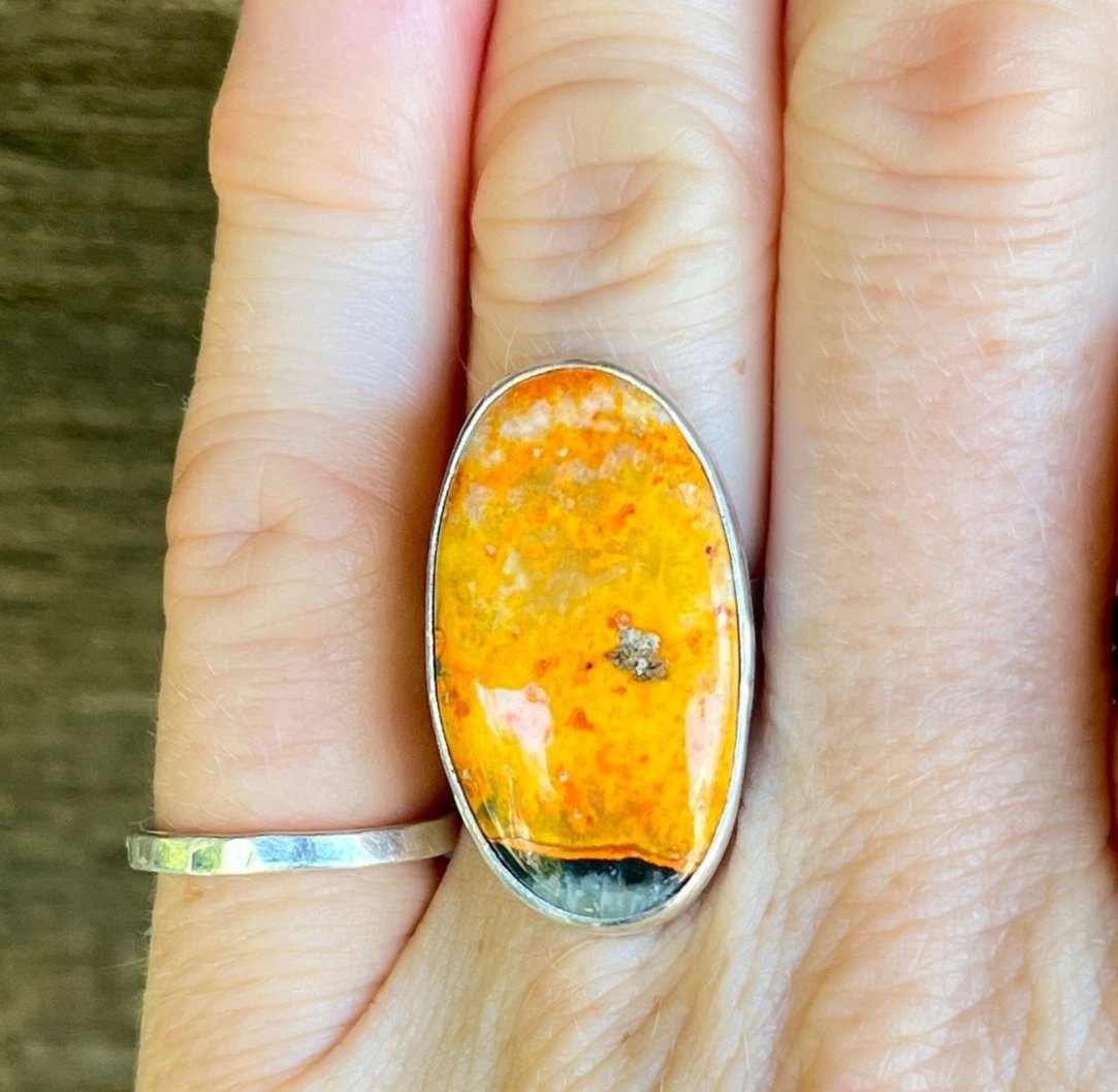 A beautiful and unmistakable Jasper, set in sterling silver with a textured band.