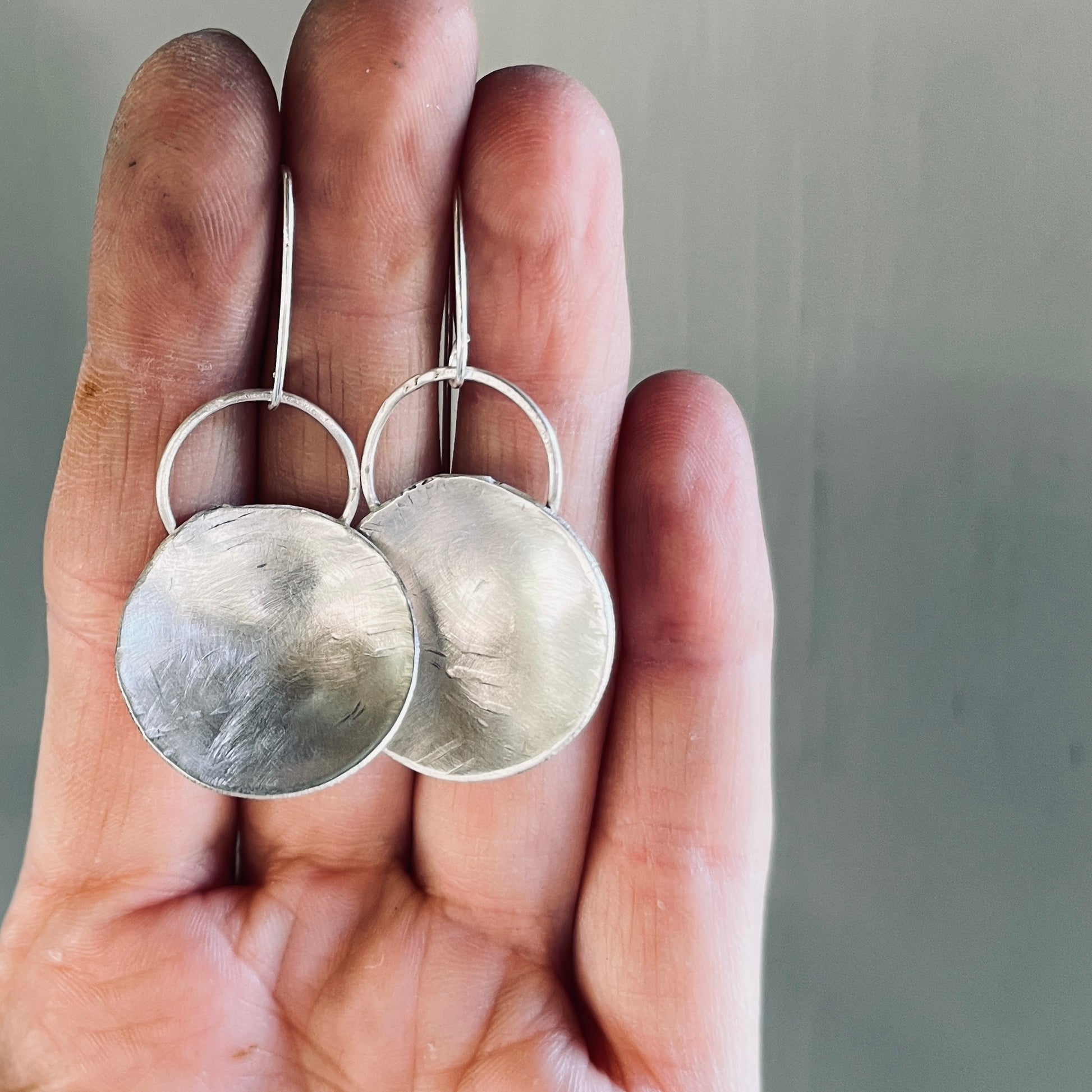 Sterling Silver hammered disks. they have a slight concave shape and hammered texture.