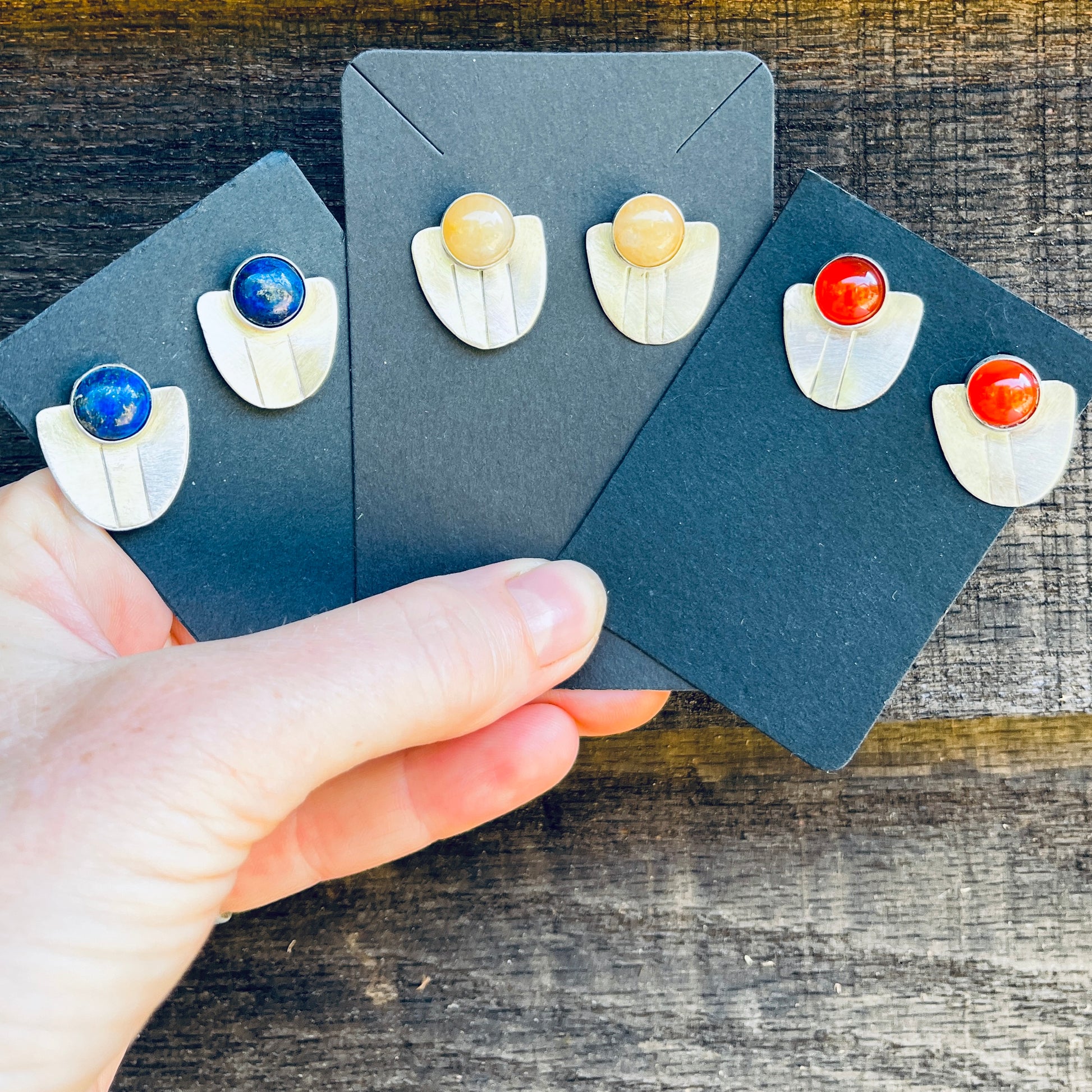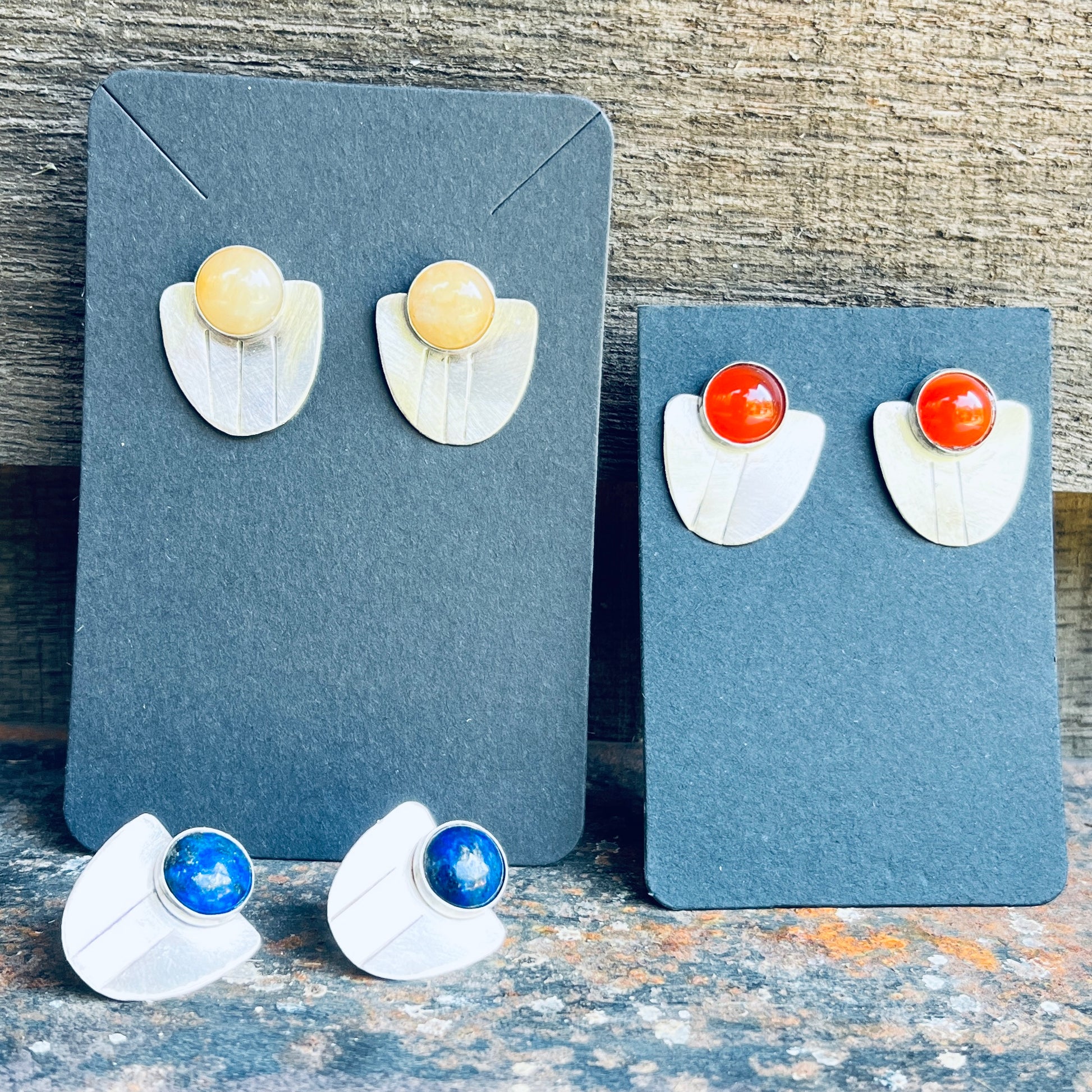 Ear wires are also sterling silver, and stones and hand working techniques will vary from each handmade pair.