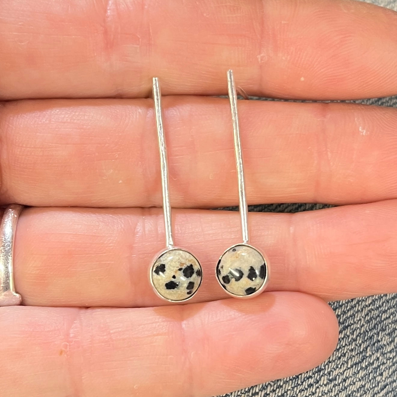 Silver Stone Drop Earrings - Dalmatian Jasper