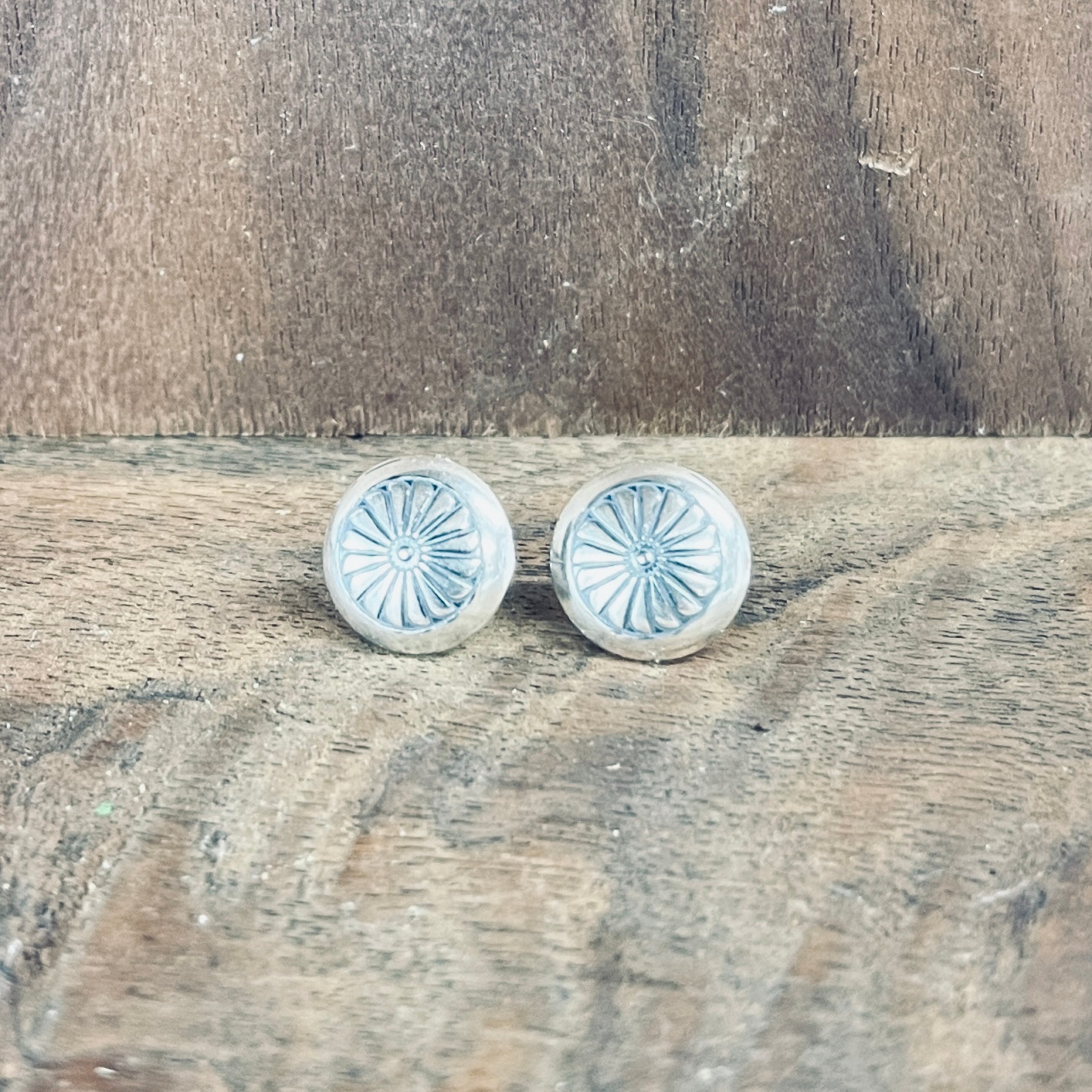 I only have one pair of these Sterling Silver Circle Studs with geometric patterning!